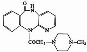 本品主要成份为:盐酸哌仑西平。其化学名称为:5,11-二氢-11-[ (4-甲基-1-哌嗪基) 乙酰]-6H-吡啶并(2,3-b) ] [1,4] 苯并二氮卓-6-酮。